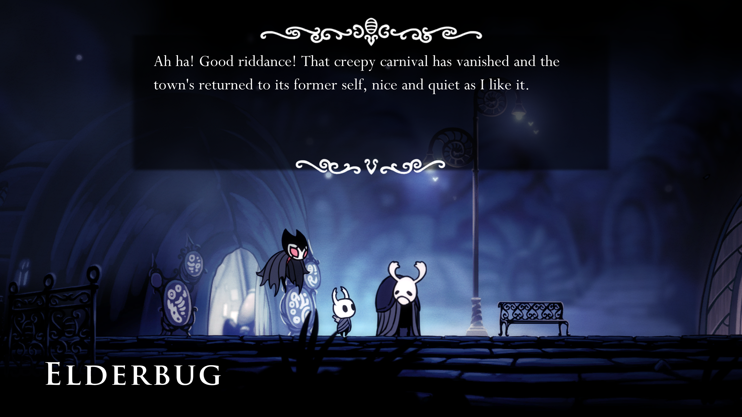 El juego tiene varios DLCs que agregan varios cambios pero a mi el que más me gustó es el de Grimm, pues para empezar este dlc tienes que volver a recorrer prácticamente todo Hallownest nuevamente. ¿Nuestra recompensa? Un conjunto de batallas de lo más increíble que vamos a experimentar en este juego. No lo había mencionado anteriormente pero esta pelea tiene el mismo impacto que las otras, nuevamente nos topamos con una pelea que se vuelve un baile donde la coordinación y paciencia lo es todo, a mi me costó demasiados intentos pero una vez que logras encontrar esas ventanas de oportunidad, tienes todas las herramientas para poderlo derrotar. Este DLC tiene una temática increíble y la música no se queda corta. Y todo esto gratis, porque si, los DLC no cuestan un peso, bendito seas Team Cherry.