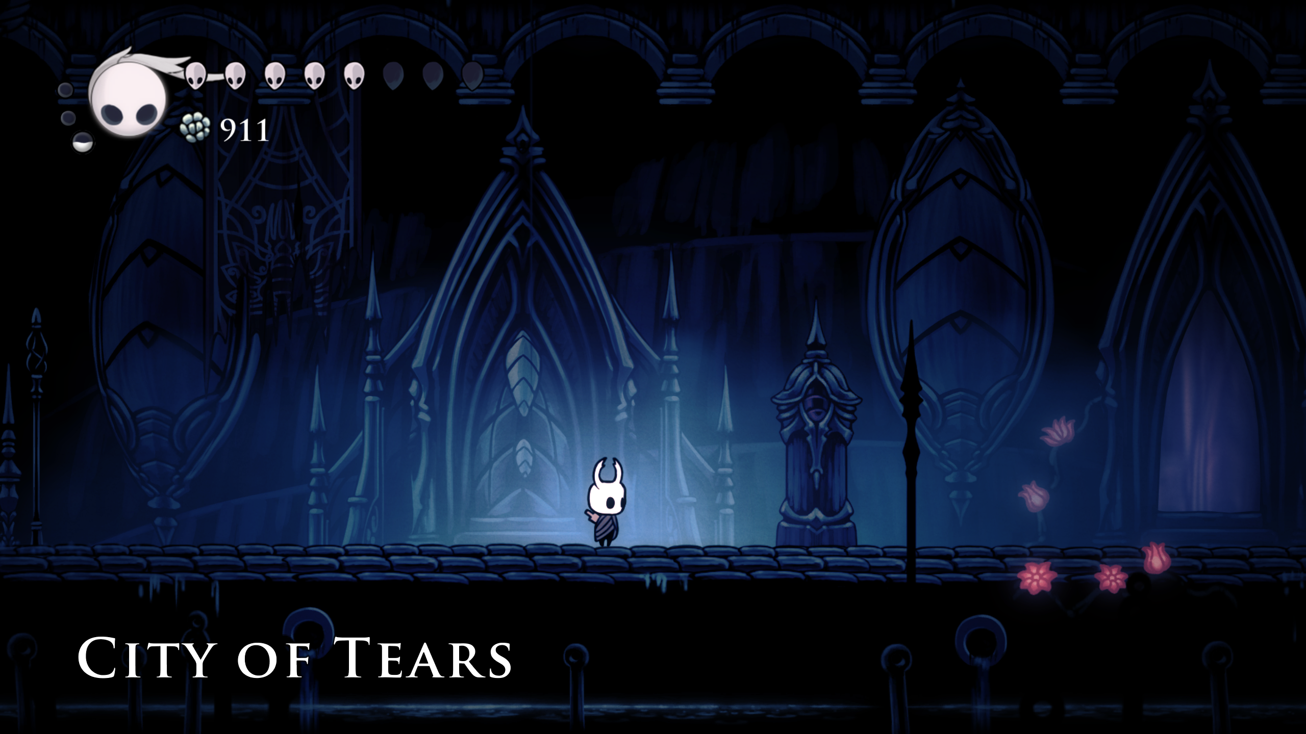 Esta es por mucho mi zona favorita, aquí ya la ambientación es totalmente melancólica, con lluvia constante y un ambiente frío. Vemos un poco mas de civilización, o lo que queda de esta, es una zona bastante grande con muchos secretos que descubrir. La musica va acompañada de un coro que hace que todo se sienta mas melancólico y recorrer la ciudad es toda una experiencia, siempre te sientes calmado pero es una calma totalmente diferente a la de Greenpath, aquí sientes soledad y algo de tristeza al ver lo que alguna vez fue la ciudad mas grande de todo Hallownest, viendo solo el vestigio de lo que alguna vez fue sin poder recuperarla a su antigua gloria.